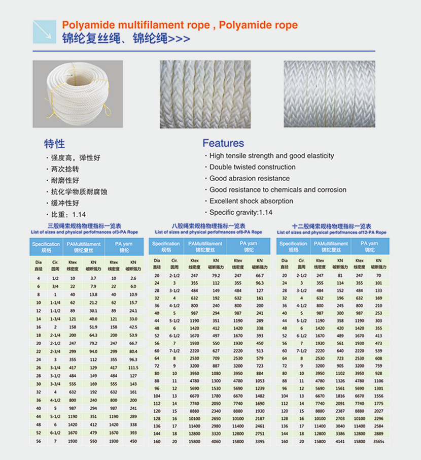 | 錦綸復(fù)絲繩、錦綸繩(八股) | |||