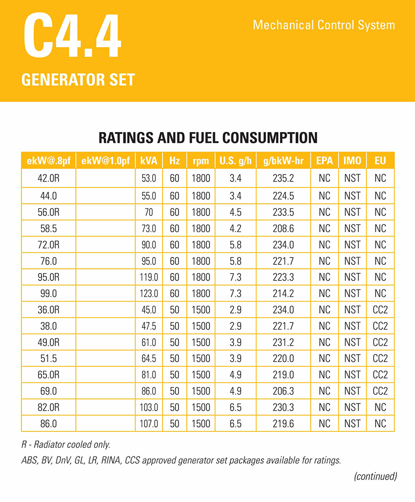 輸出容量: 107.0kVA 燃油消耗: 6.5U.S.g/h