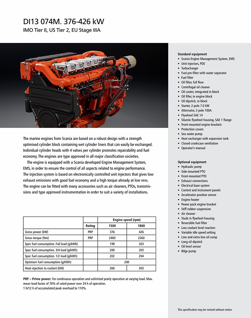 燃油消耗: 203g/kWh 缸數: 4-stroke