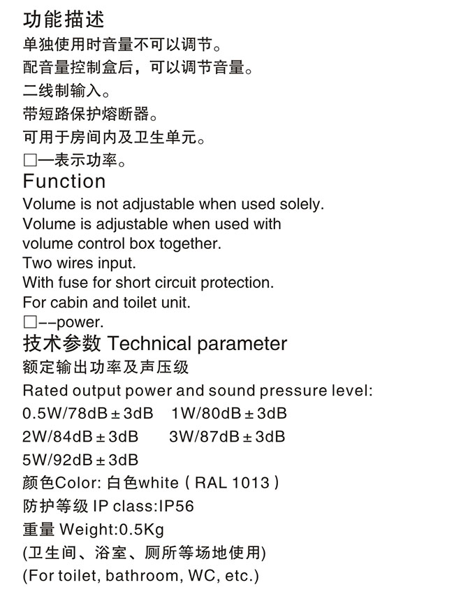| 功率: | 0.5W | 聲壓等級(jí): | 78dB |
