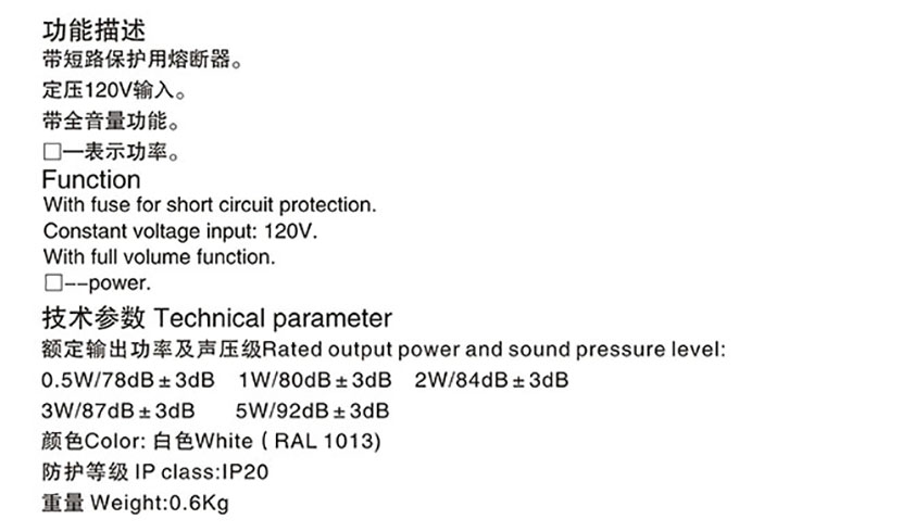 | 功率: | 0.5W | 聲壓等級: | 78dB |