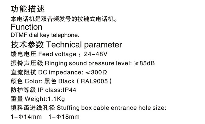饋電電壓: 24-48V 振鈴聲壓級: ≥85dB