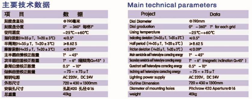 主半圓自差校正能量: 1°~45° 次半圓自差校正能量: 1°~6°