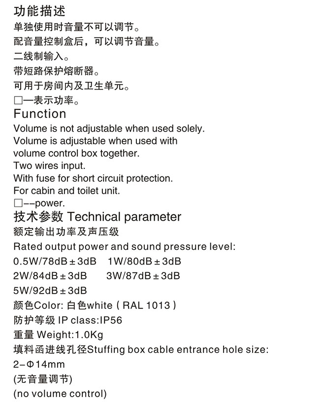 | 功率: | 2W | 聲壓等級: | 84dB |