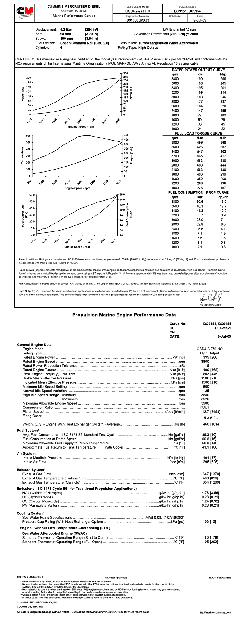 認證: This marine diesel engine is certified to the model year requirements of EPA Marine Tier 2 Per 40 CFR 94 and conforms with the NOx requirements of the International Maritime Organization(IMO),MARPOL 73/78 Annex VI,Regulation 13 as applicable. 排量: 4.2L