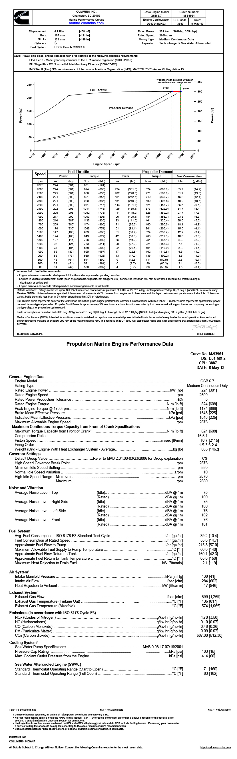 進氣方式: Turbocharged/Sea Water Aftercooled 最大扭矩: 1174N.M(轉速為1700rpm下的最大扭矩)