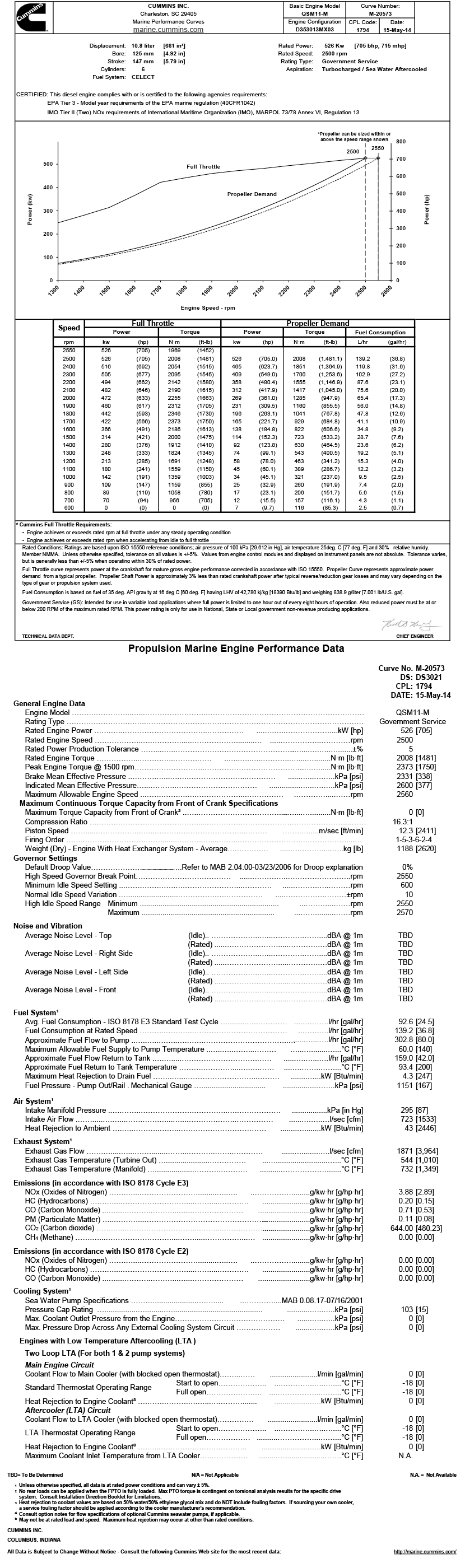 | 進(jìn)氣方式: | Turbocharged/Sea Water Aftercooled | 最大扭矩: | 2373N.M(轉(zhuǎn)速為1500rpm下的最大扭矩) |