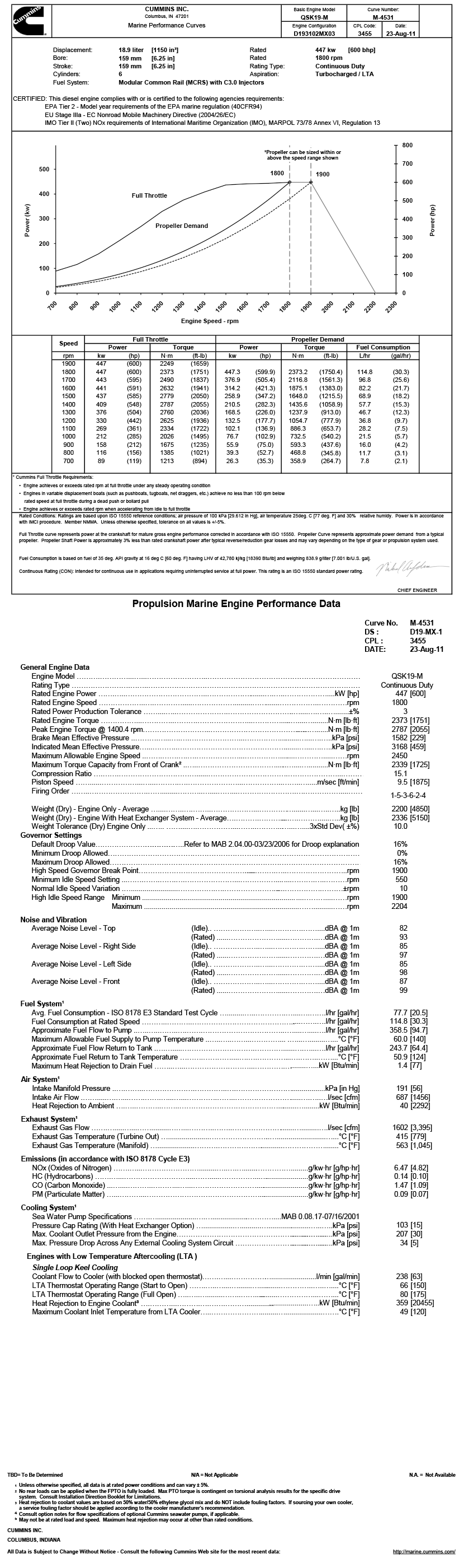 | 廢氣排溫: | 415℃(Turbine out)/563℃(Manifold) | 廢氣體積流量: | 1602L/S |