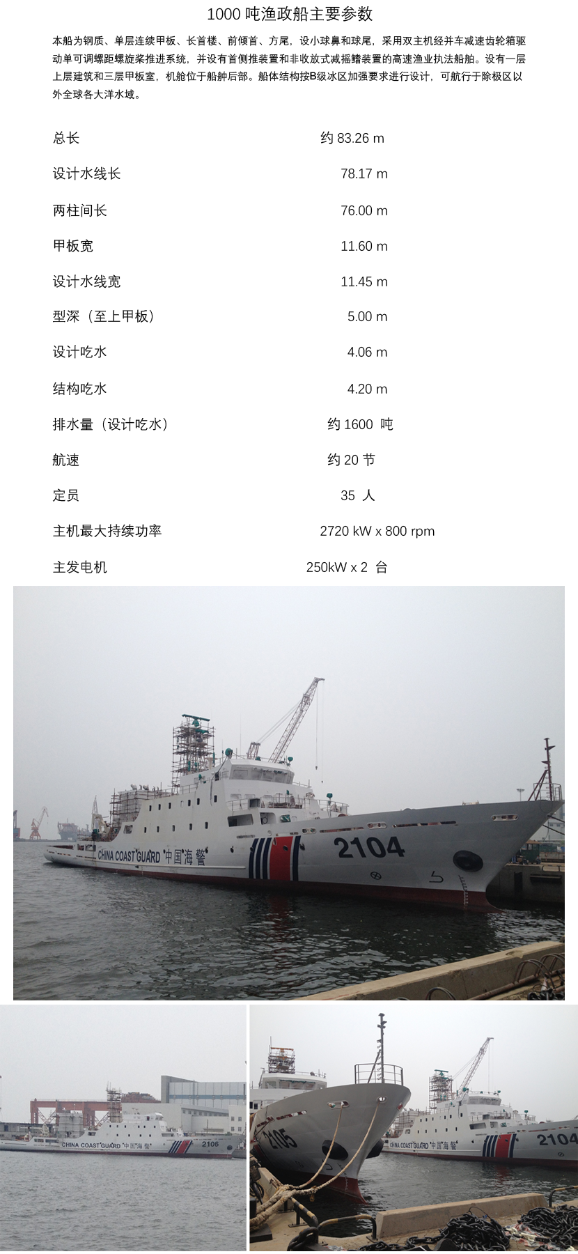 | 排水量: | 1600t | 發電機功率: | 250kW x 2 臺 |