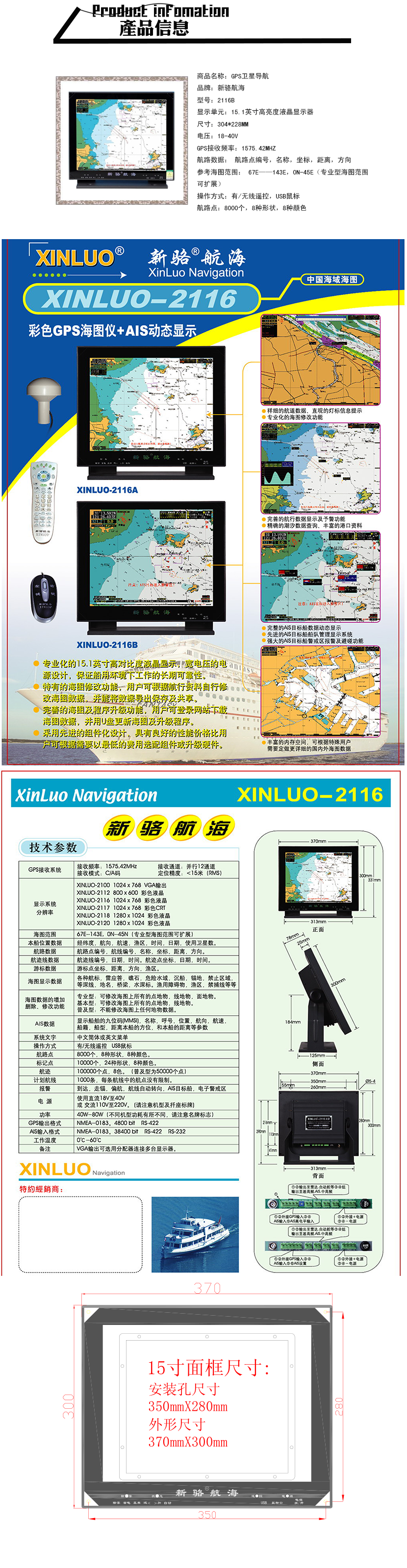 | 顯示模式: | 經緯度;航向;航速;漁區;時間;日期;使用衛星數 | 海圖顯示范圍: | 67E-143E,ON-45N(專業型海圖范圍可擴展) |