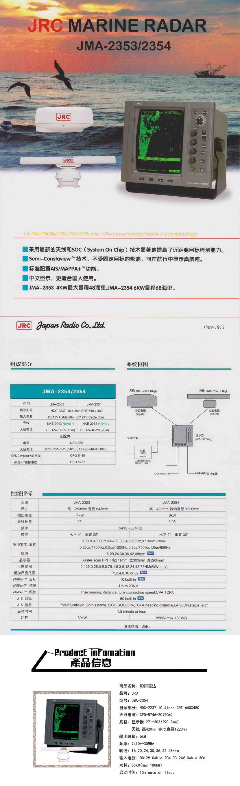 探測范圍: 0.125~72NM(6kWonly)