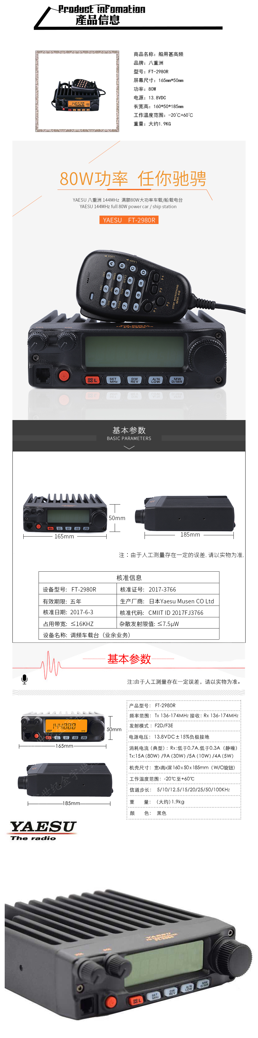 | 發(fā)射頻率: | 136-174MHz | 輸出功率: | 80W |