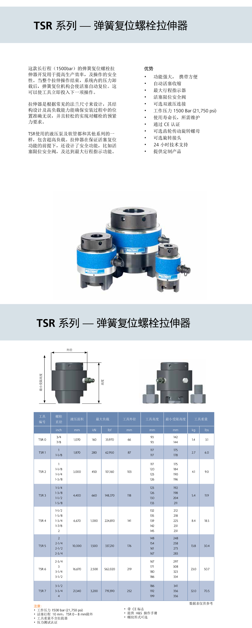 | TSR彈簧復位螺栓拉伸器 | |||