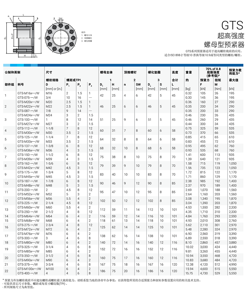 螺紋直徑(英制): 1.125in 預緊力(公制): 535kN