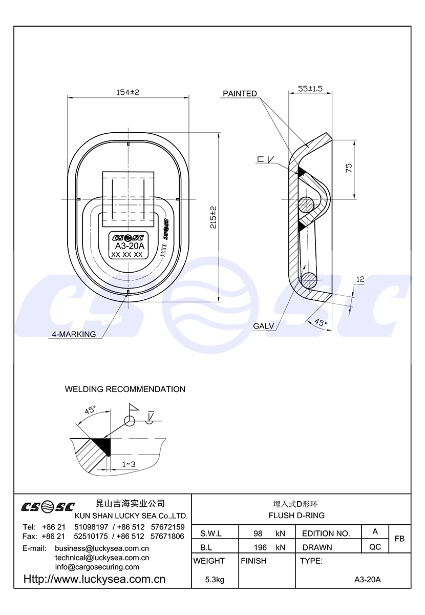 類型: 埋入式D形環 重量: 5.3kg