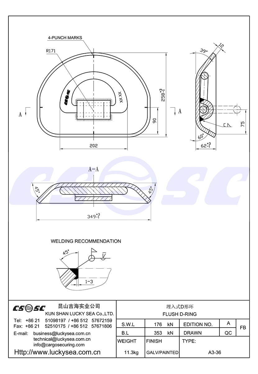 類型: 埋入式D形環 重量: 11.3kg