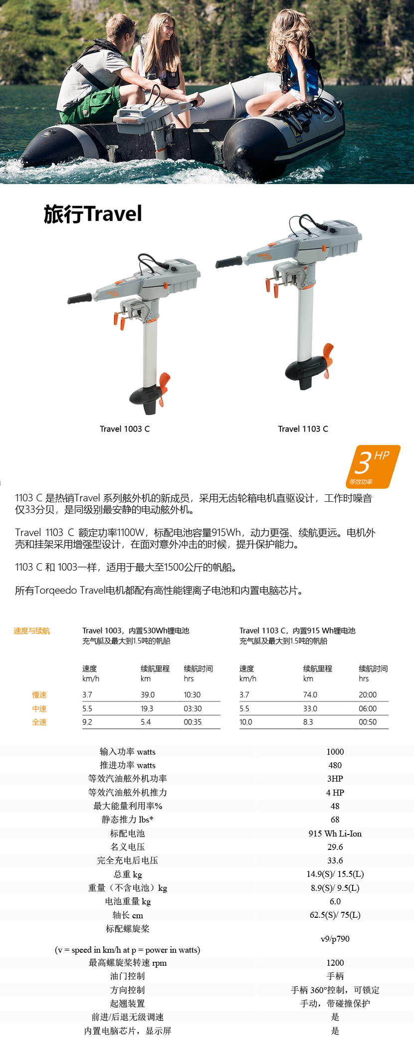 | Travel 1003 C靜音電動舷外機 | |||