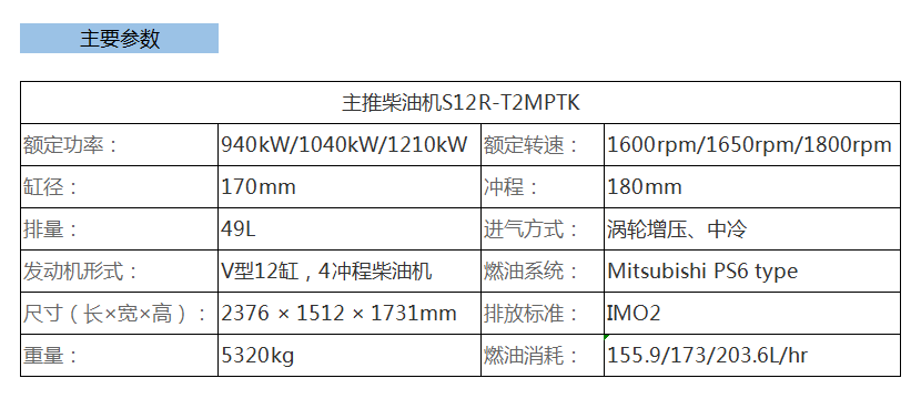 發動機形式: V型12缸,4沖程柴油機 燃油系統: Mitsubishi PS6 type