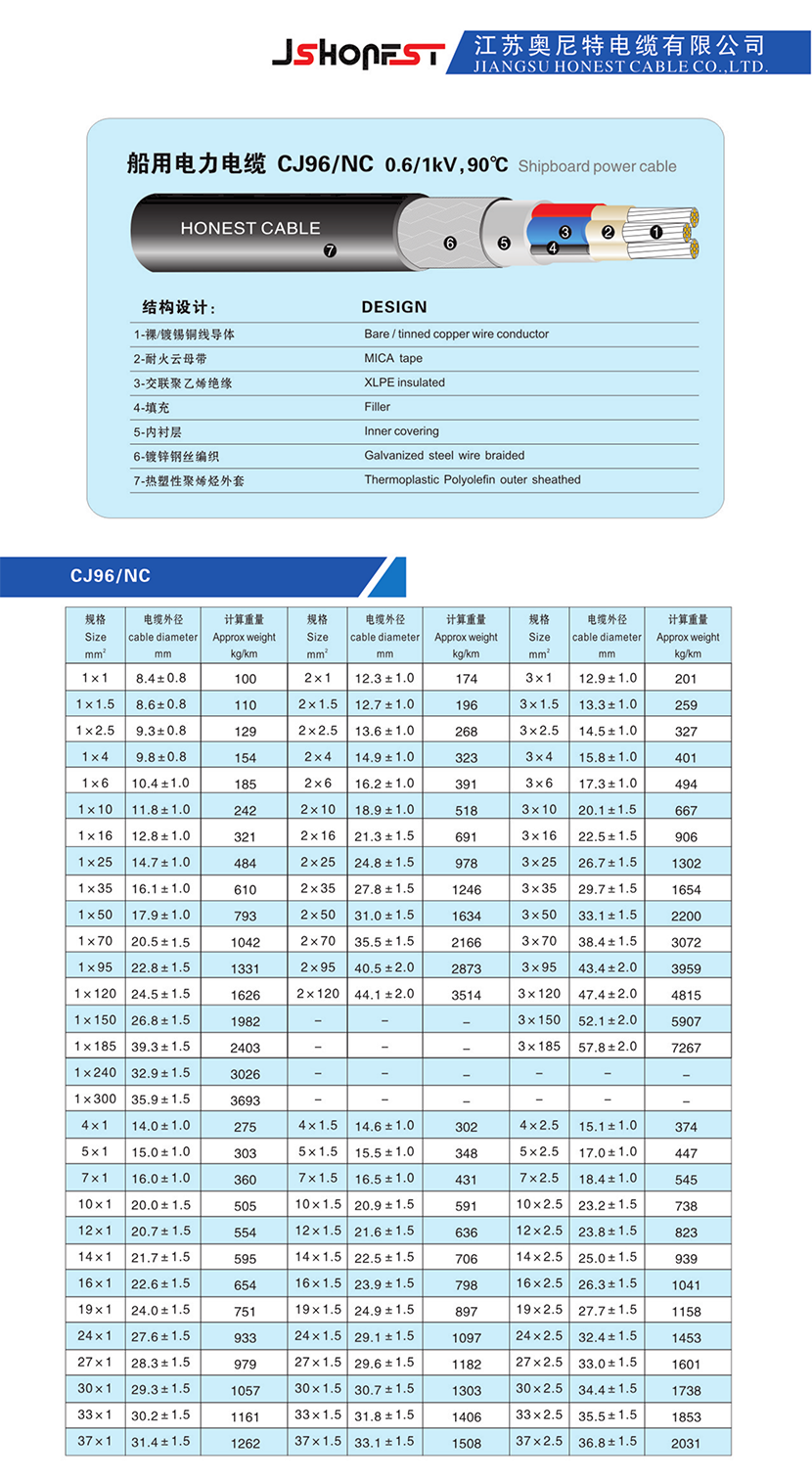 類型: 船用電力電纜 名義直徑: 8.4±0.8mm