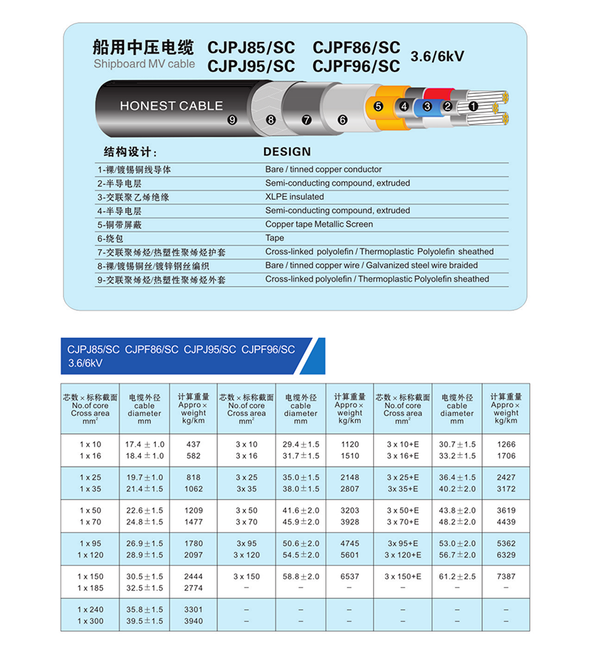 類型: 船用中壓電纜 名義直徑: 29.4±1.5mm
