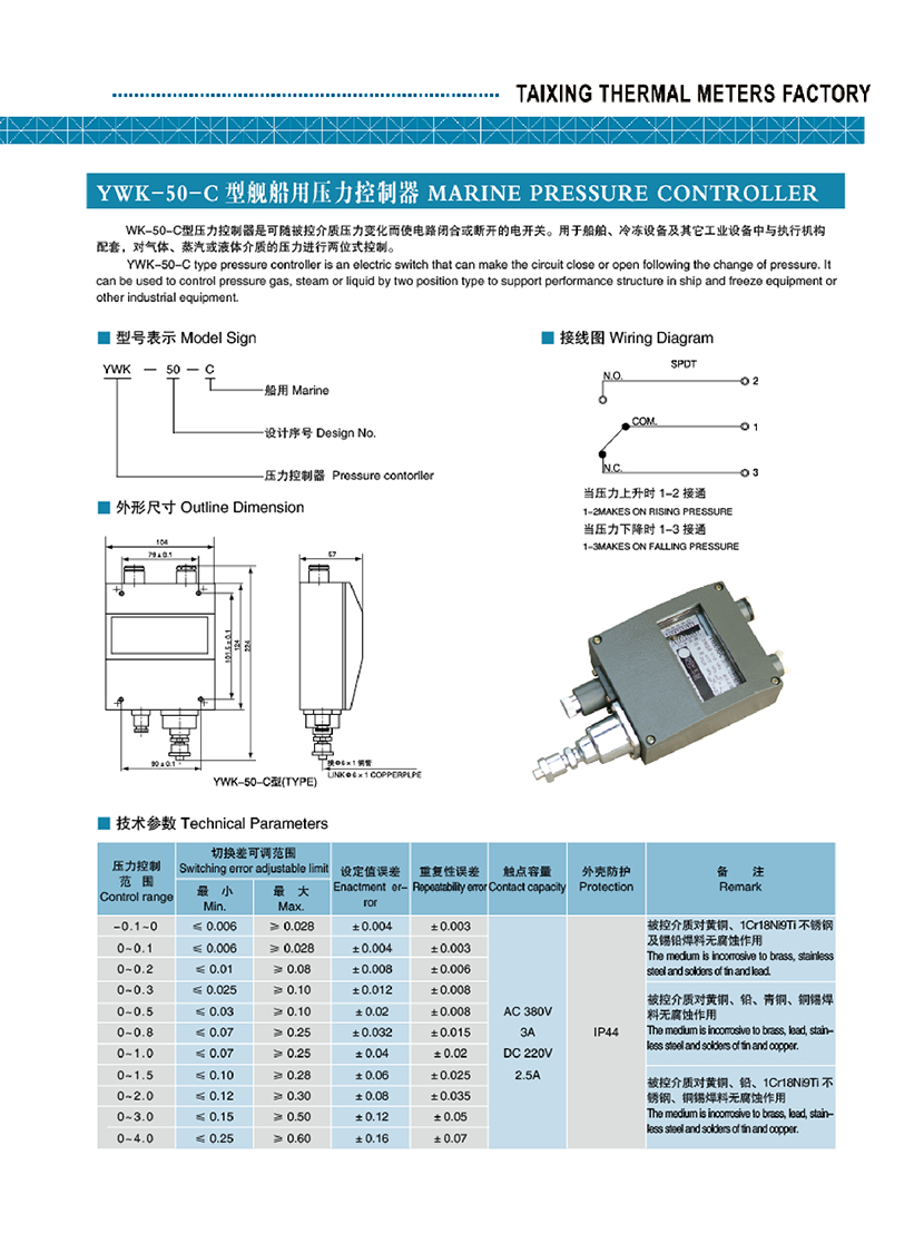 YWK-50-C型艦船用壓力控制器