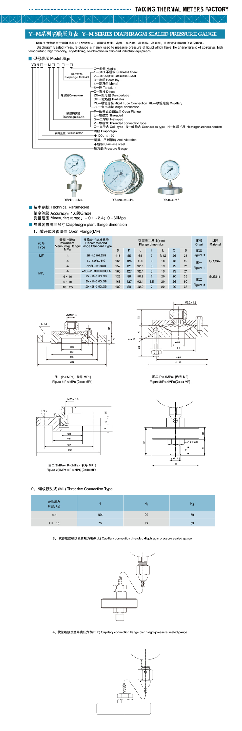 Y-M系列隔膜壓力表