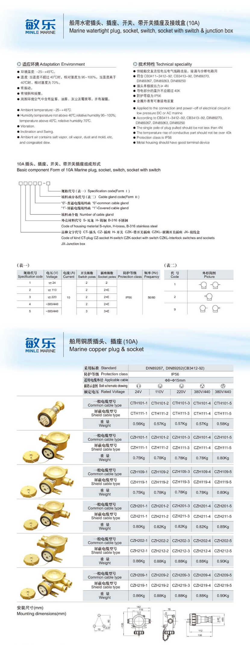 | 船用銅質(zhì)插座(10A) | |||