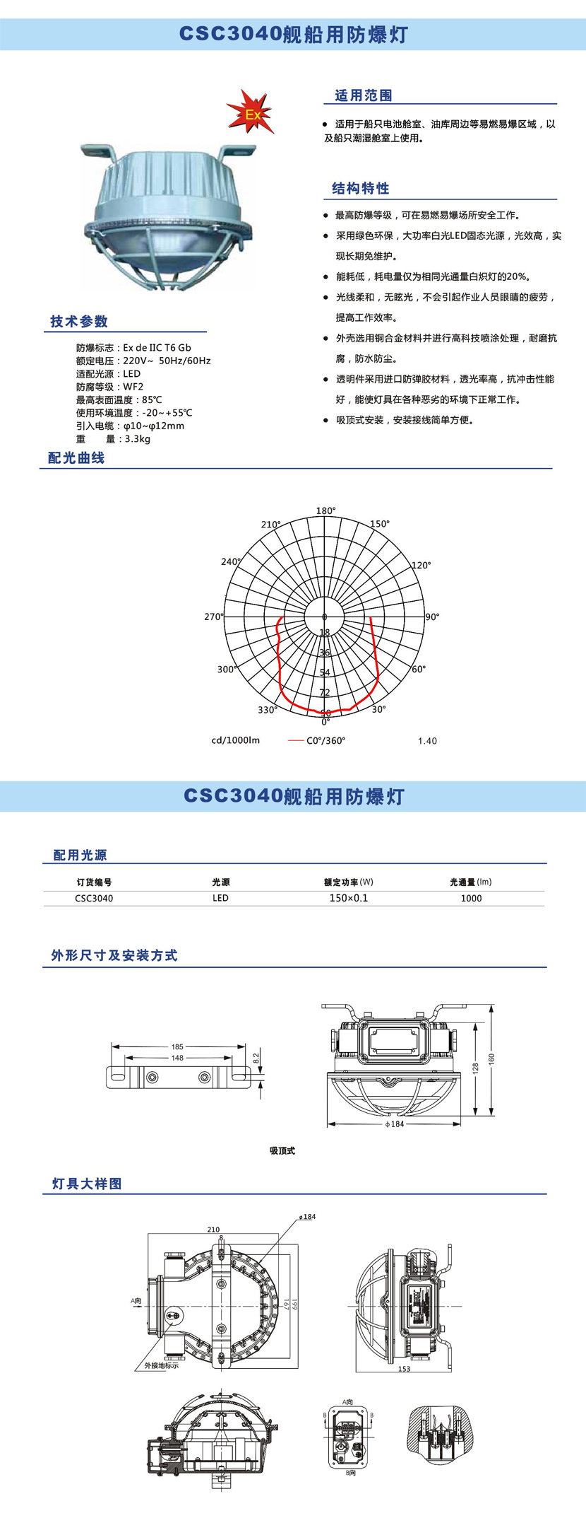 光通量: 100lm 防爆標志: Ex de ⅡC T6 Gb