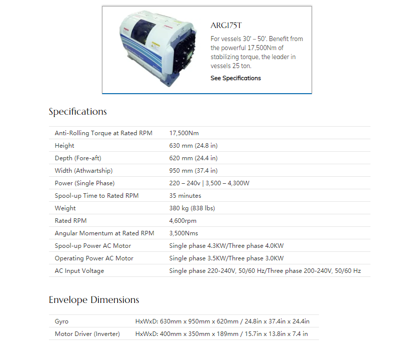 啟動加速時間: 35min 額定減搖力矩: 17500N-M