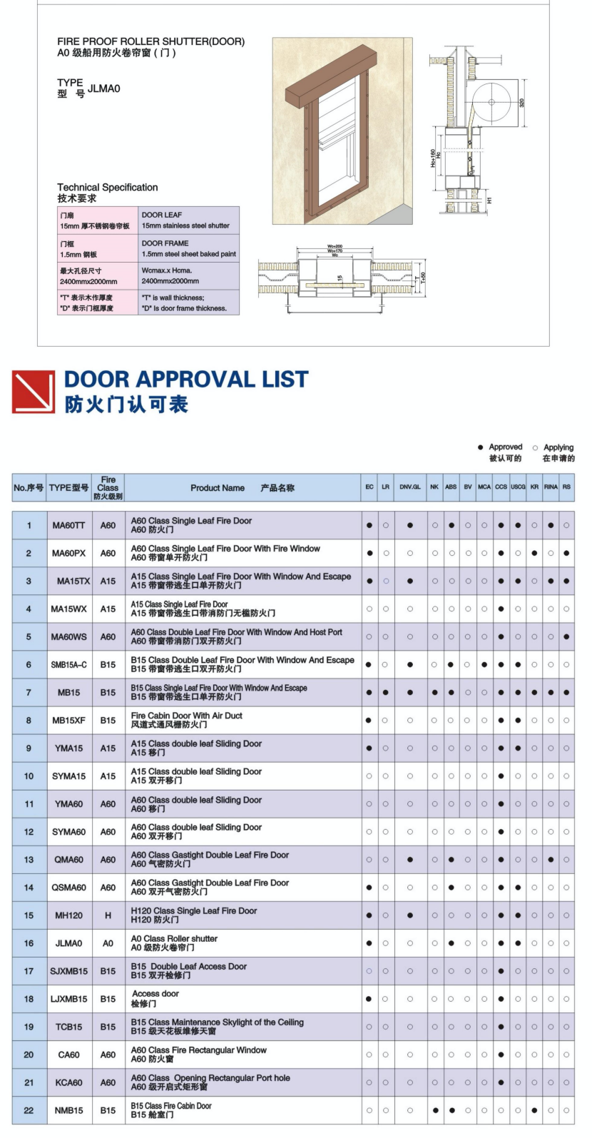 艙室門系統箱型框A0級船用防火卷簾窗(門)