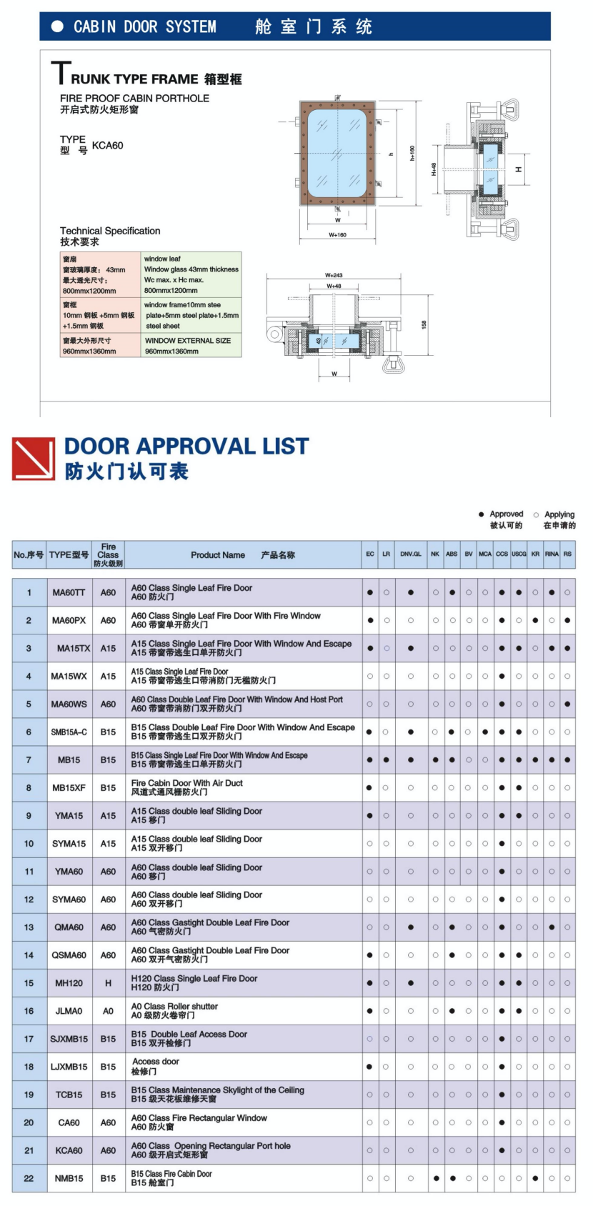 平臺 艙室門系統箱型框開啟式防火矩形窗