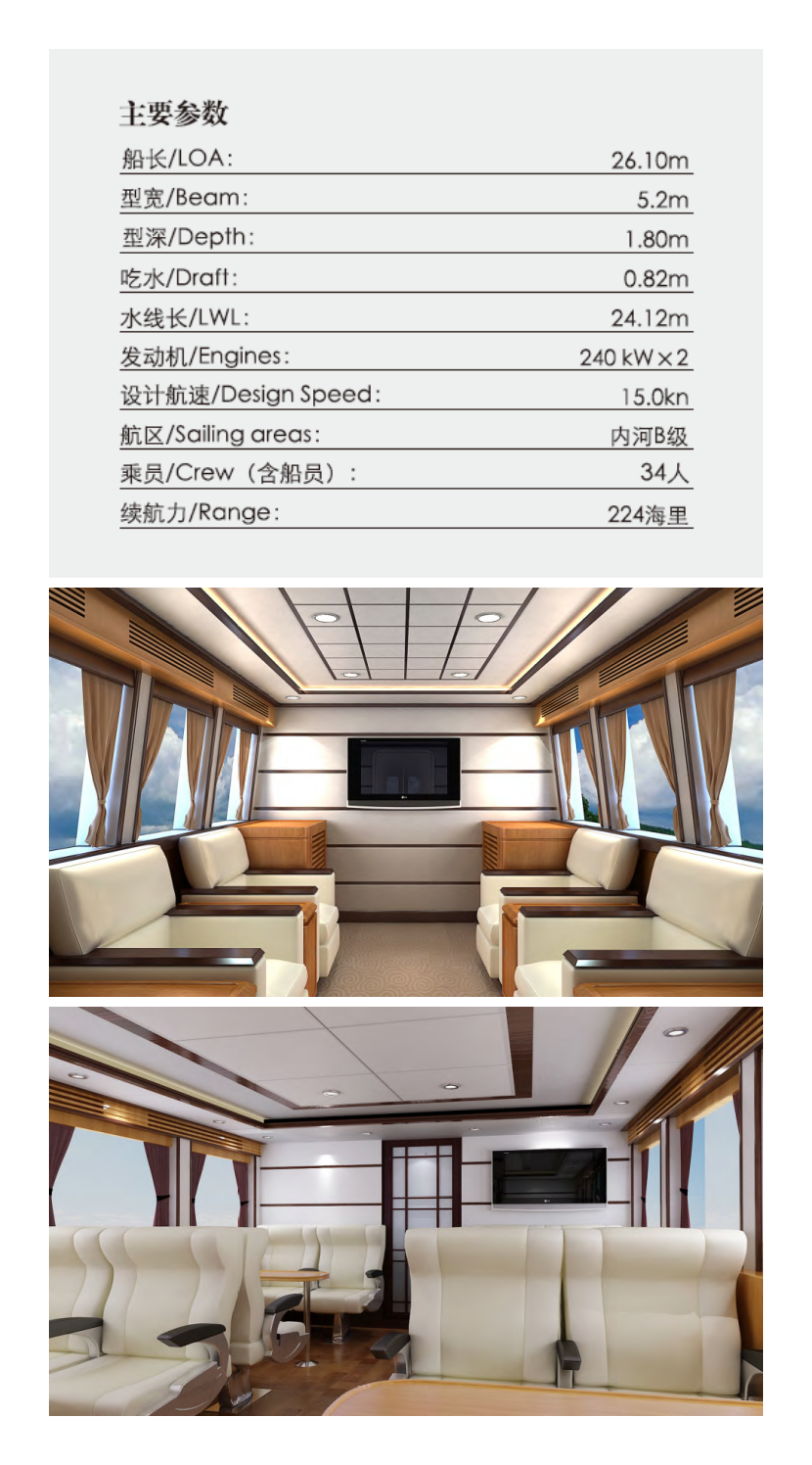 | 最大乘員: | 34p | 航區(qū): | 內(nèi)河B級 |
