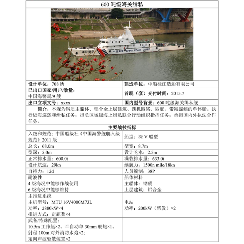 | 上建材料: | 鋁合金 | 續(xù)航力: | 1500n mile/18kn |