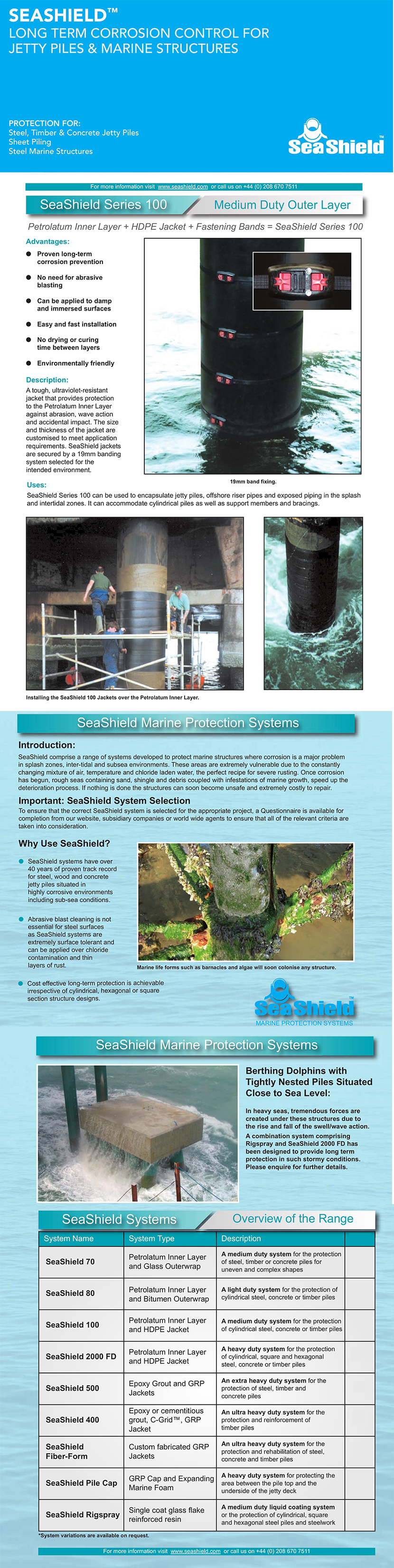 | 應用預處理要求: | Surface tolerant | 適用場景: | Damp and immersed surfaces; Encapsulating jetty piles, offshore riser pipes and exposed piping in the splashand intertidal zones. |