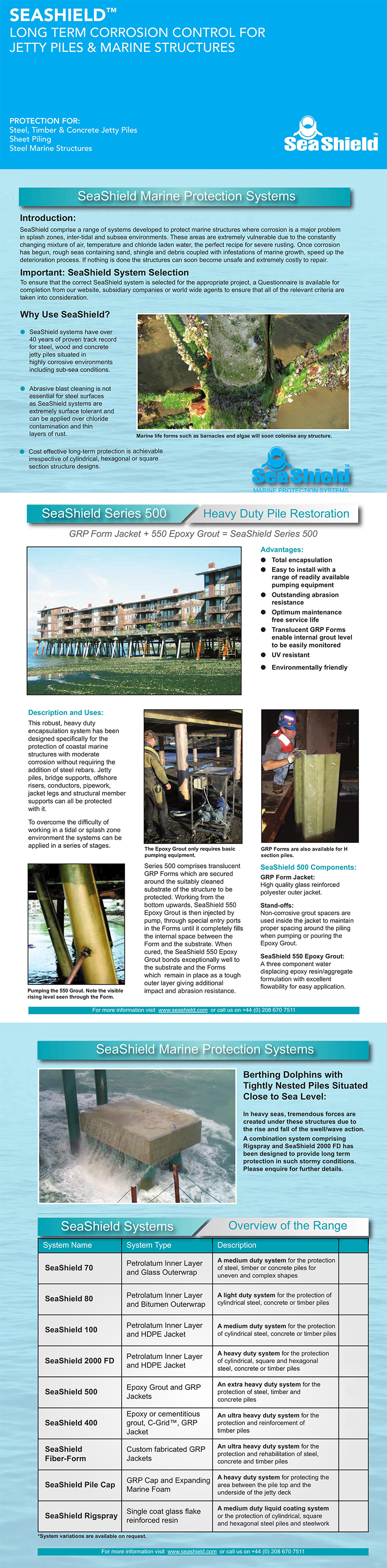 For moderate corrosion without requiring the addition of steel rebars; Encapsulating jettypiles, bridge supports, offshorerisers, conductors, pipework,jacket legs and structural membersupports in the splash and intertidal zones. |