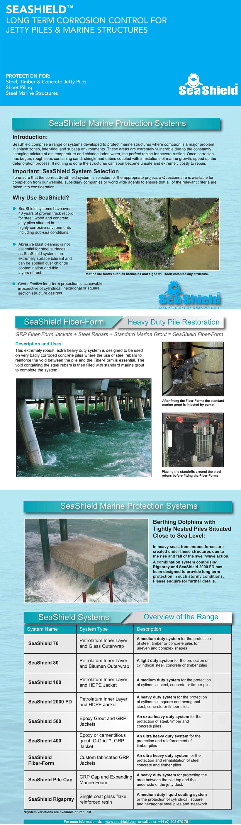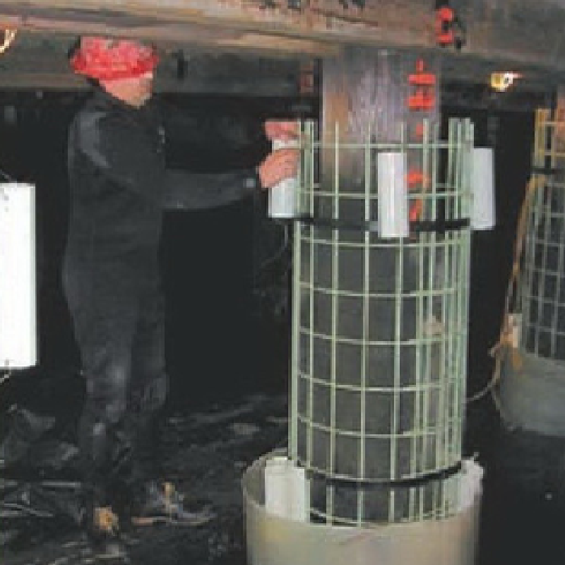 適用場景: For very badly corrosion where the use of steel rebars is essential. 組成部分: GRP form jackets; Steel rebars; Standard marine grout