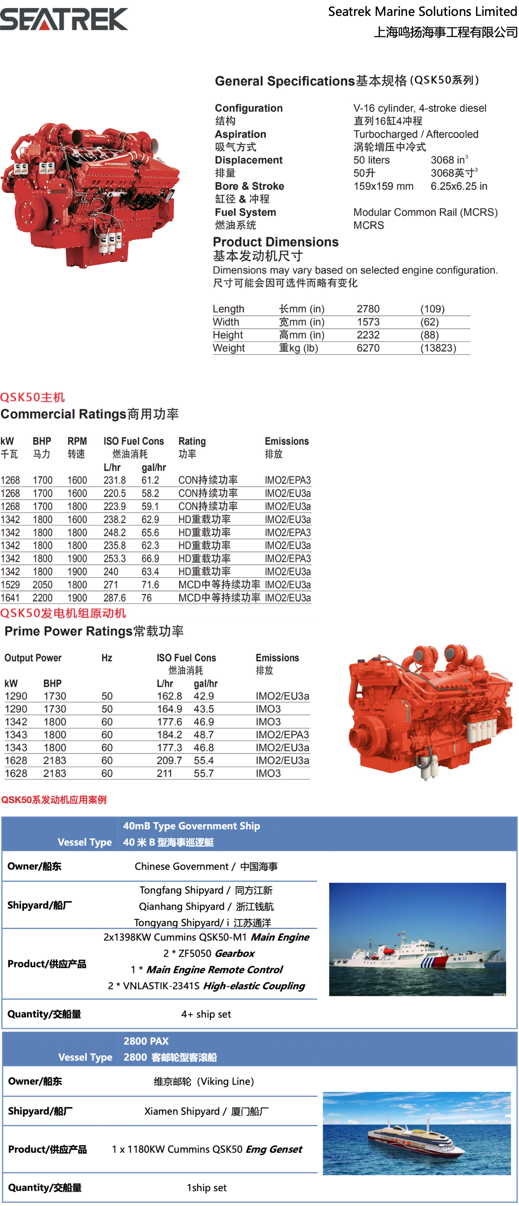 平臺 QSK50系列1268~1641kw船用發動機