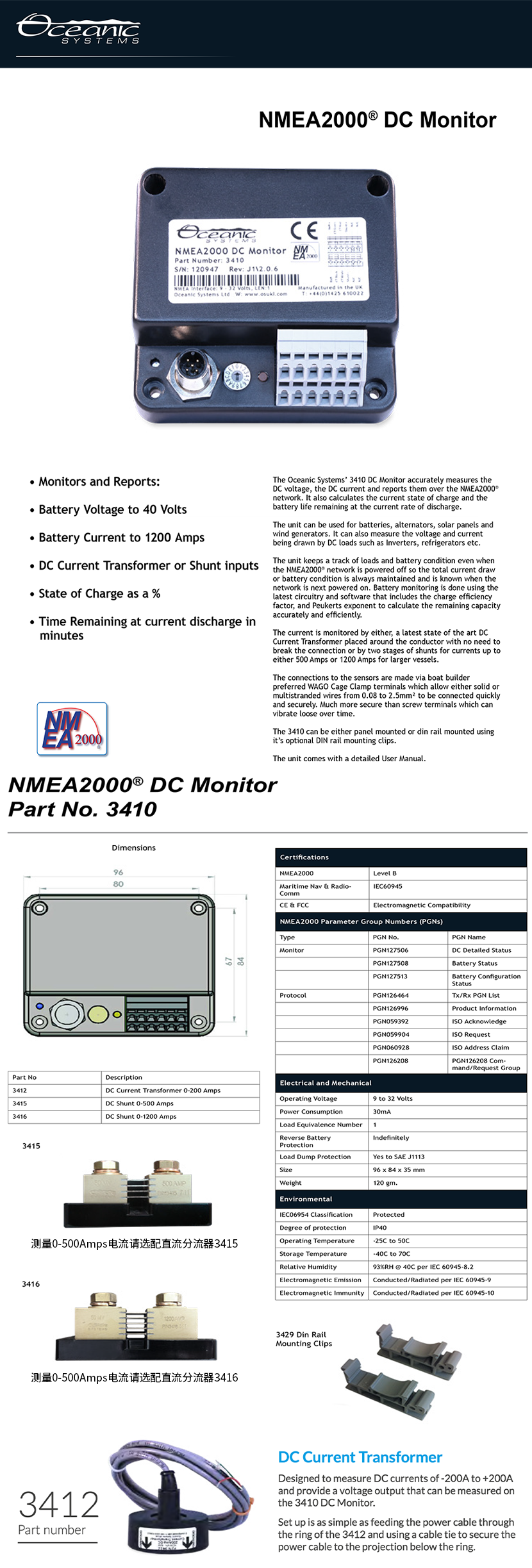 監測電壓范圍: 0~40V 數據傳輸媒介: NMEA2000?網絡
