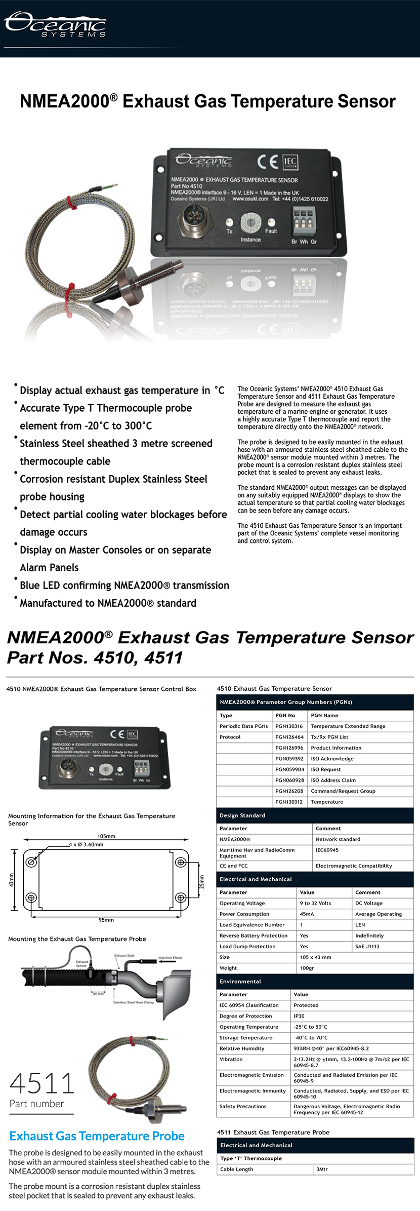 是否需要校準: 實現作用: 監測船用主機或發電機排放氣體溫度,并將T型熱電偶測得的溫度通過NMEA2000?網絡進行傳輸;在設備發生故障前通過廢氣溫度探測冷卻水堵塞情況
