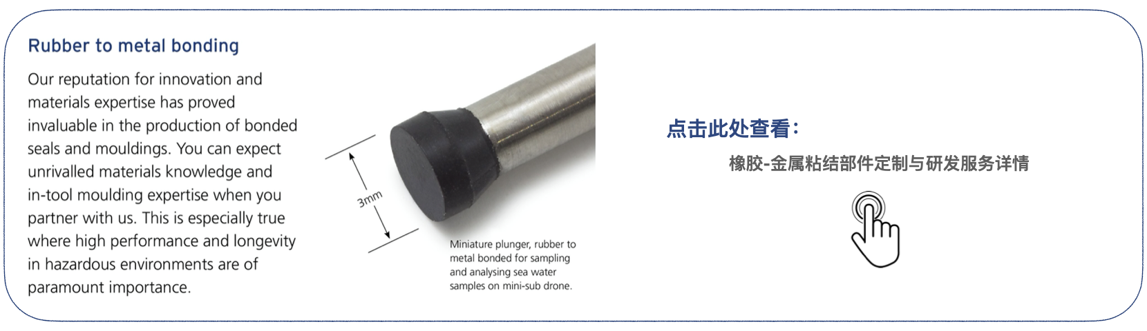 | 應用領域: | 水下工程;油氣開發;聲吶類產品;實時影像捕捉系統;水下機器人;泵類產品;閥類產品;壓縮機類產品;齒輪箱;變壓器;傳動設備;纜線密封;電池;新能源類裝備;各種控制、電氣保護、通信及監測類配套系統等 | 技術優勢: | 豐富的材質數據庫,應對各類復雜及高難度應用需求;即使是硬度極地的橡膠,也能提供精確塑膜;應對更高的密封需求;更低的磨損;更長的使用壽命;完善的模具設計及除塵技術可保證成品的完成度及理想的耐損力;充分考慮使用環境提供精準契合的定制方案;優秀的物理性能降低運維成本 |