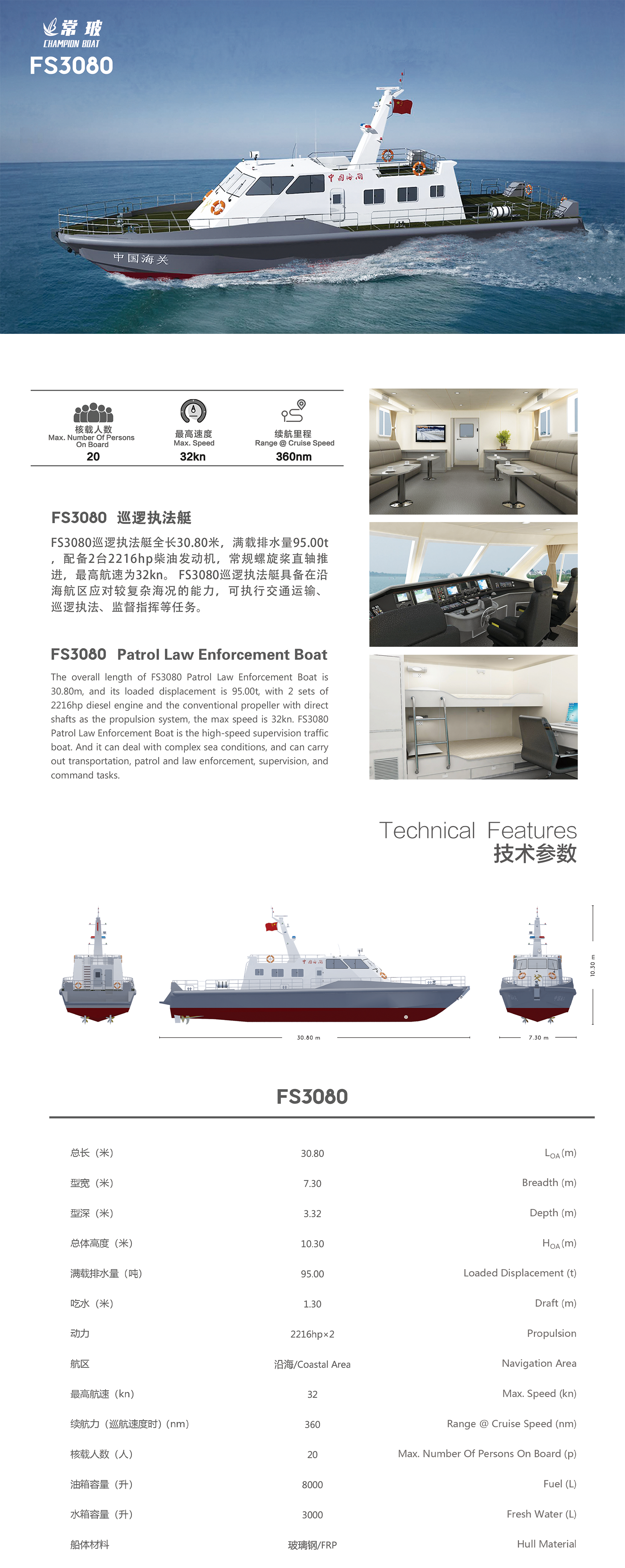 平臺 FS3080 巡邏執法艇