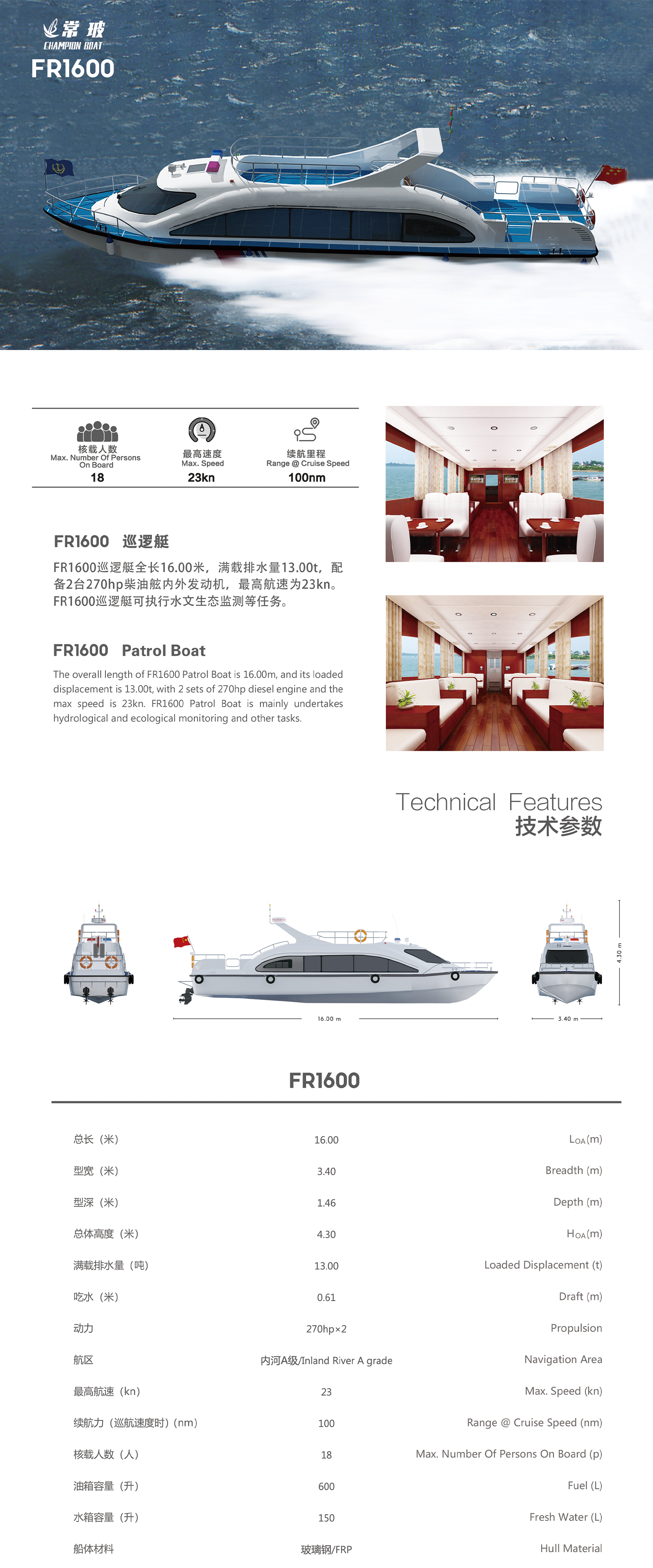 最大乘員: 18人 船體材料: 玻璃鋼/FRP