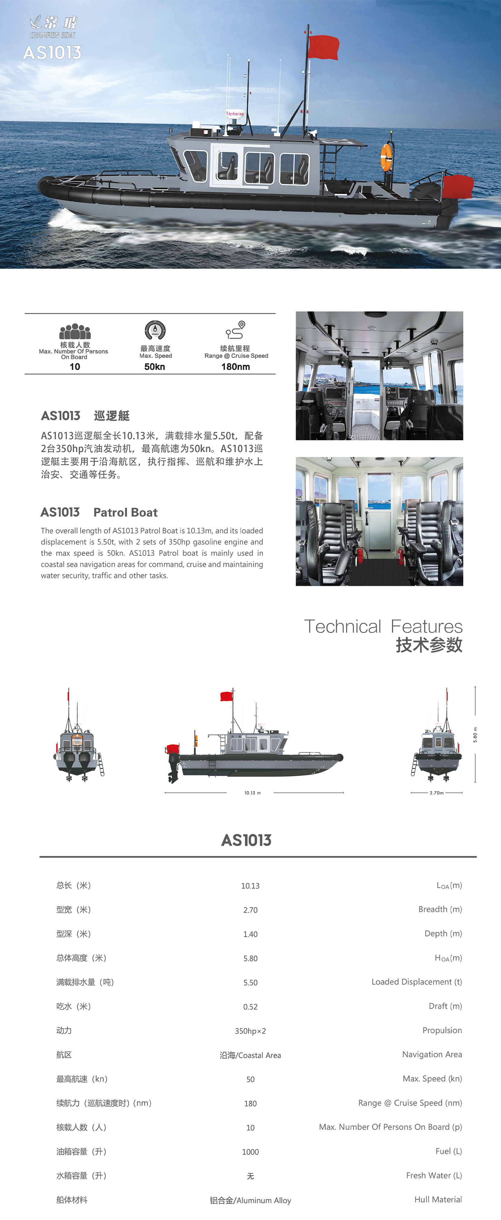 | 最大乘員: | 10人 | 船體材料: | 鋁合金/Aluminum Alloy |