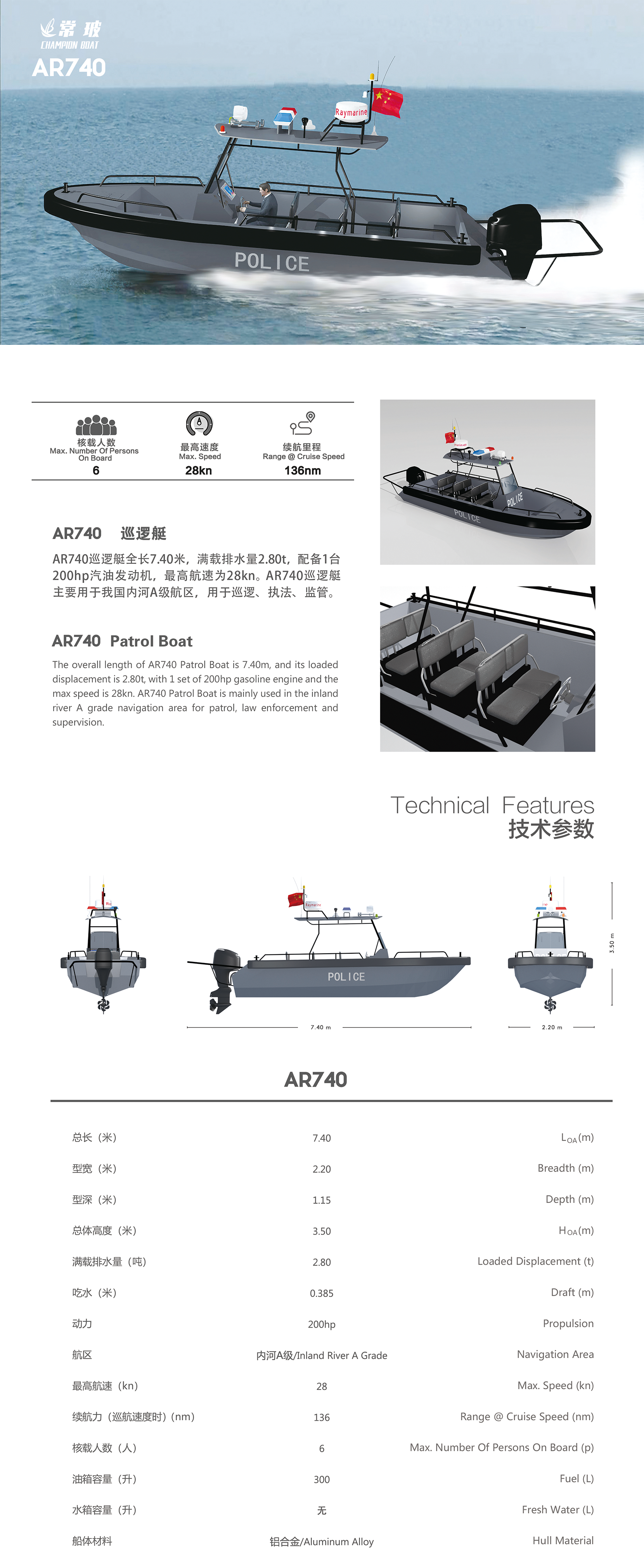 最大乘員: 6人 船體材料: 鋁合金/Aluminum Alloy