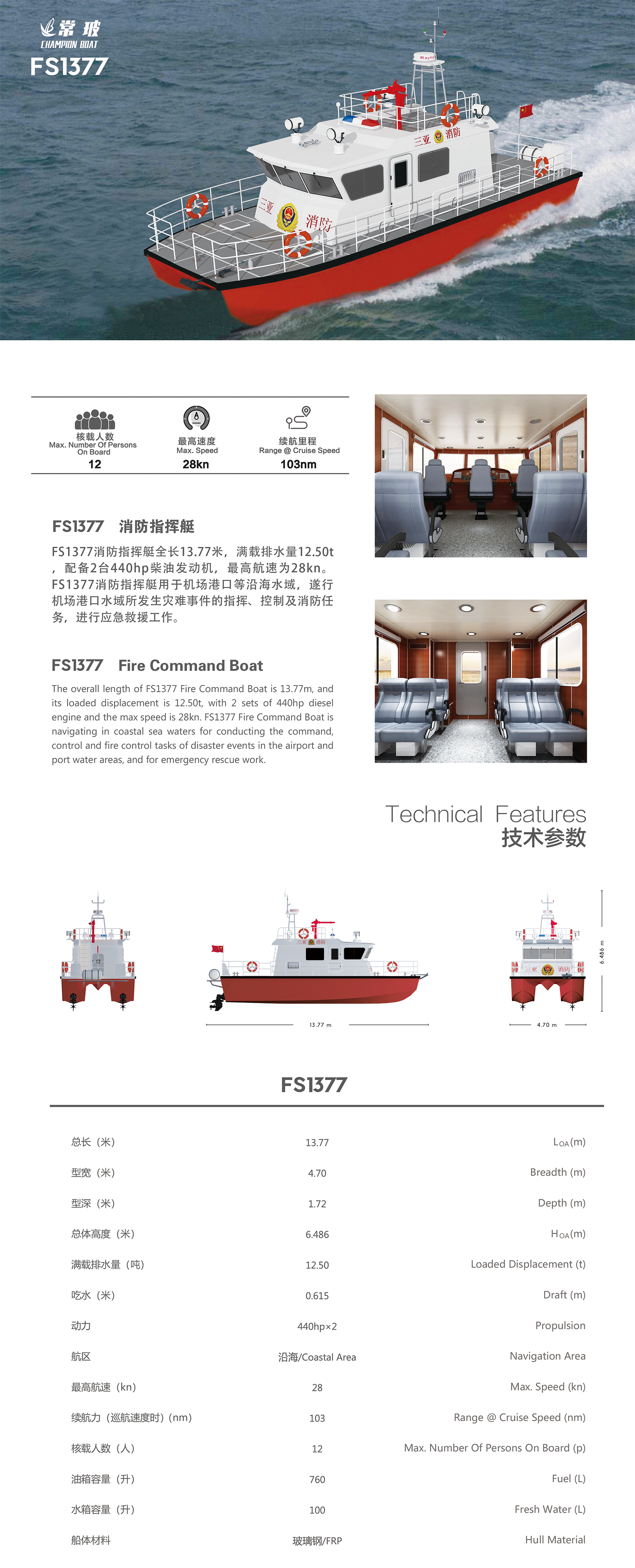 最大乘員: 12人 船體材料: 玻璃鋼/FRP