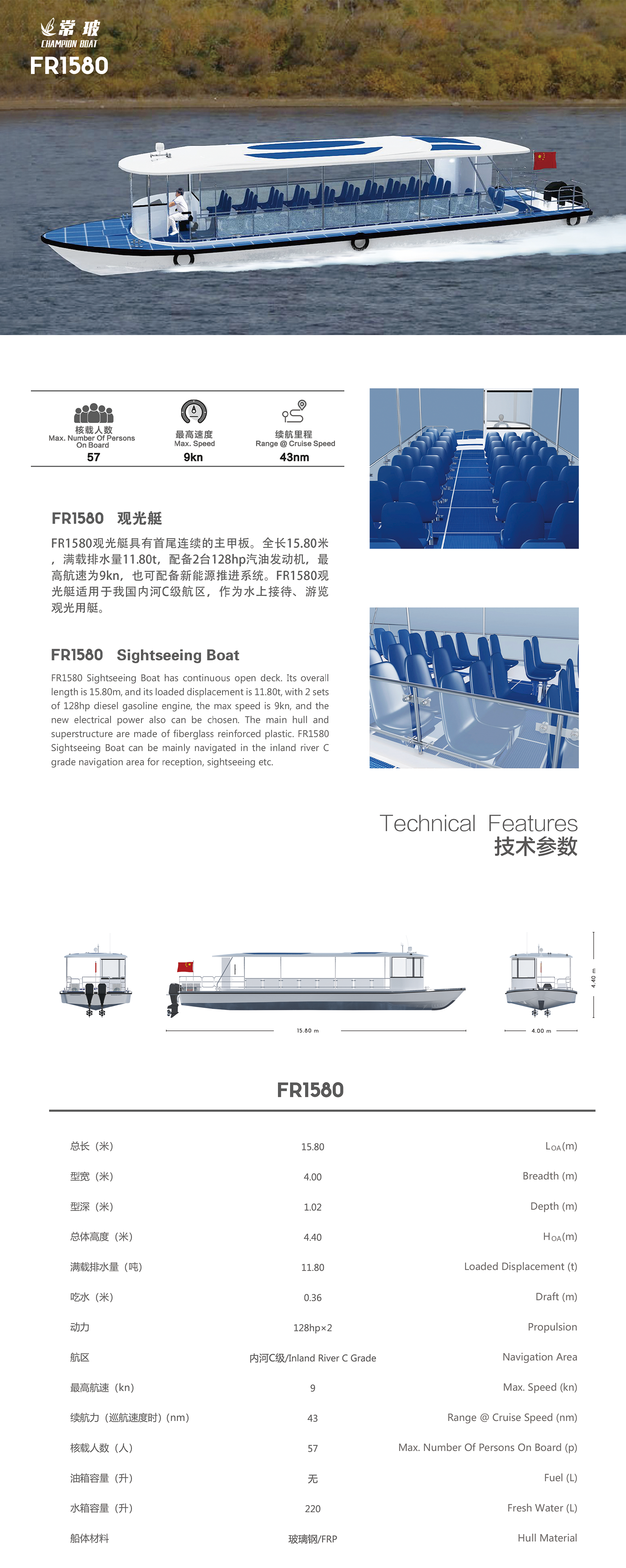 核載人數: 57人 主體材料: 玻璃鋼/FRP