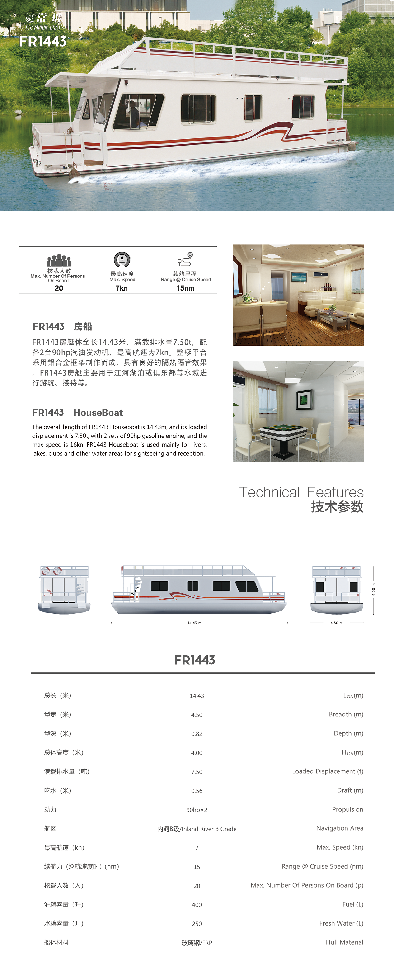 總長: 14.43m 航區: 內河B級/Inland River B Grade