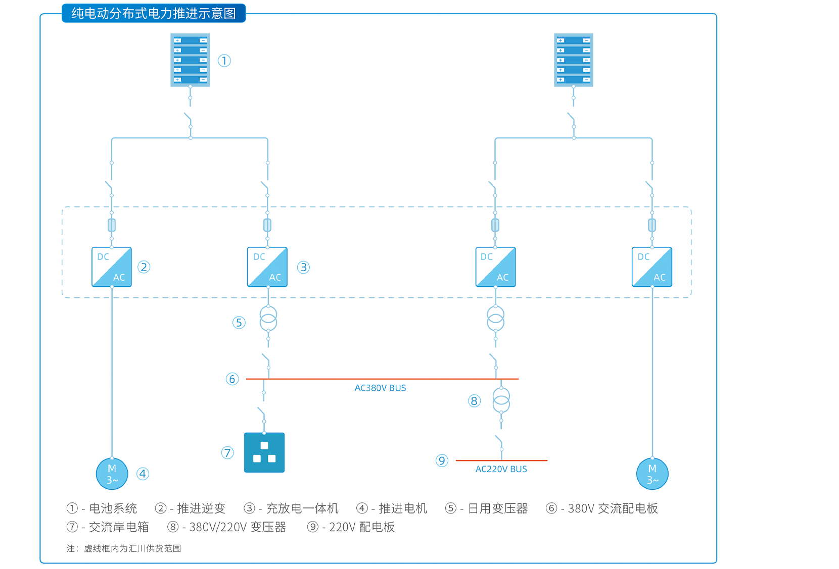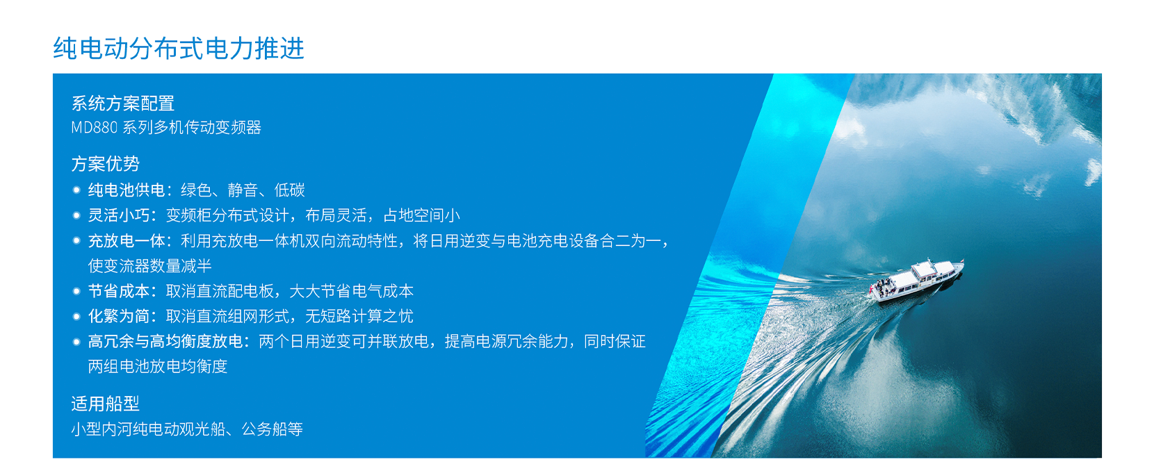 純電池供電,綠色、靜音、低碳;變頻柜分布式設計,布局靈活,占地空間??;使變流器數量減半;取消直流配電板,大大節省電氣成本;取消直流組網形式,無短路計算之憂;高冗余與高均衡度放電,提高電源冗余能力,同時保證兩組電池放電均衡度
