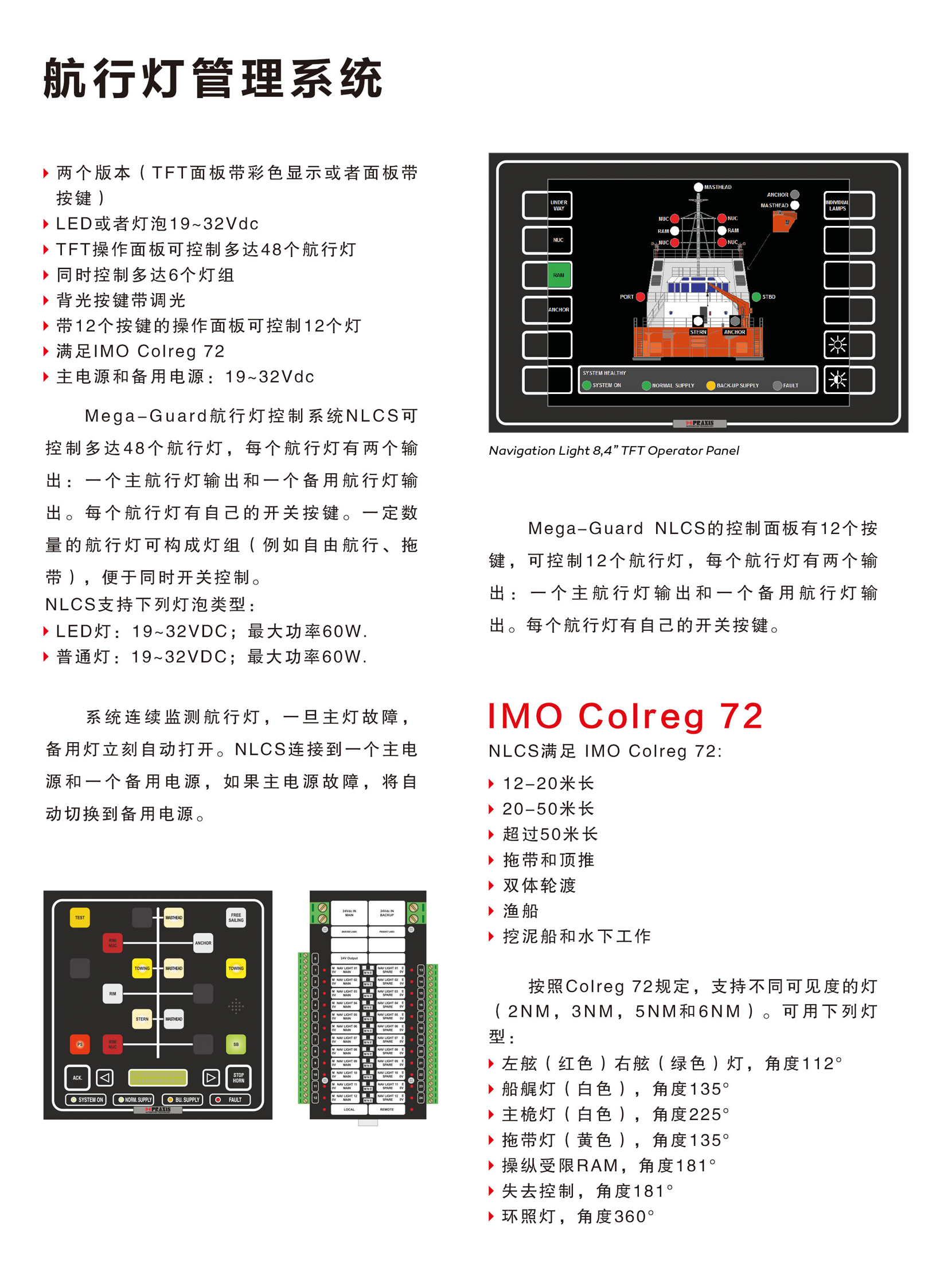 類型: 航行燈控制 系統(tǒng)特點: 可控制多達48個航行燈,每個航行燈有兩個輸出,一個主航行燈輸出和一個備用航行燈輸出