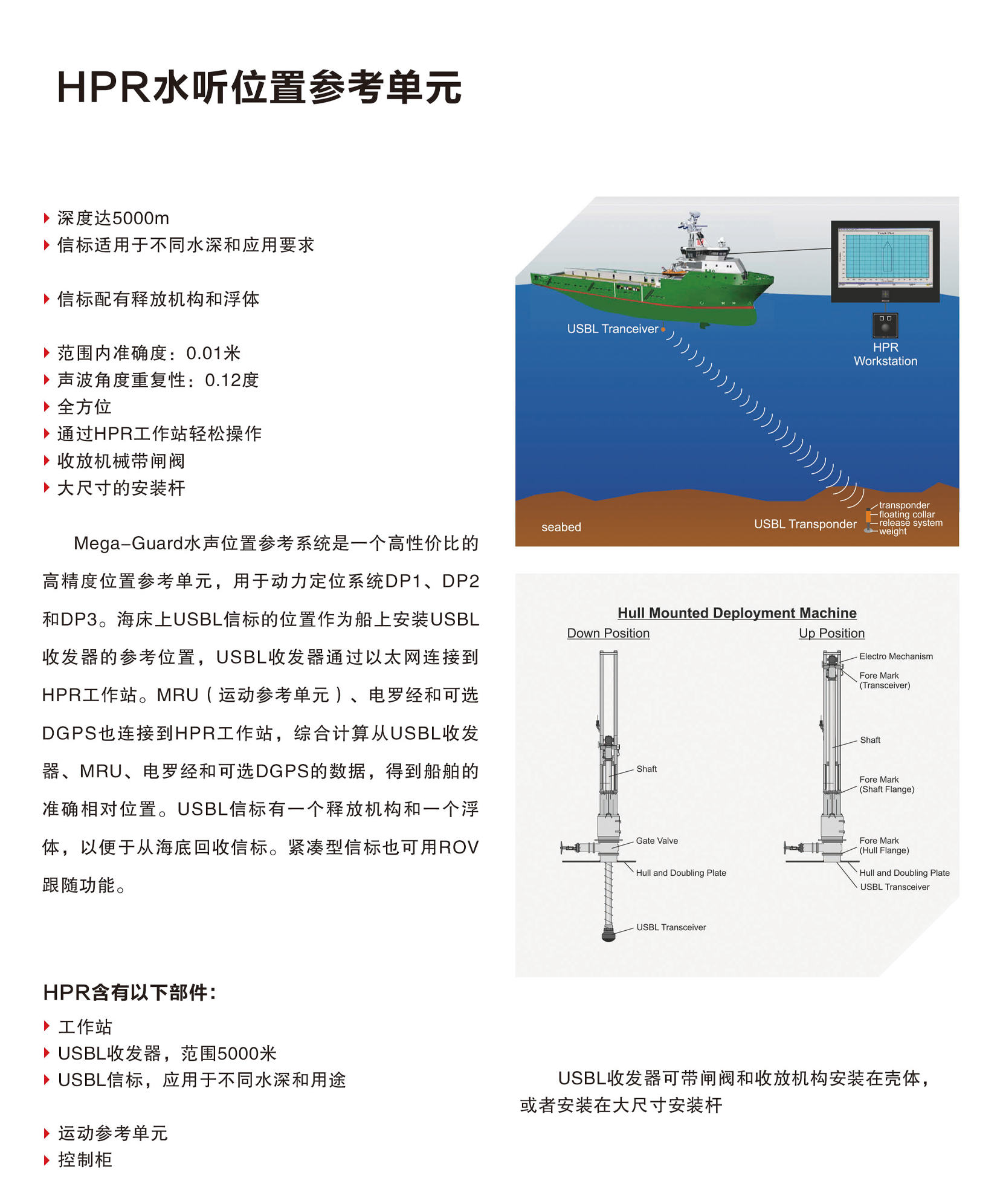 性能優勢: 適用于不同水深和應用要求;可全方位進行位置測量;通過HPR 工作站輕松操作;有一個釋放機構和一個浮體,以便于從海底回收